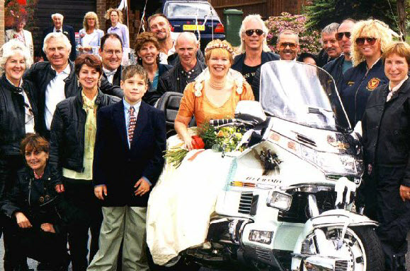 Dee chose to travel in a Classic Jaguar which was escorted from Wells to Bath by a long procession of Goldwings while Kevin made his way on the pillion of Adrians Wing.